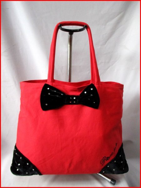 - Rose fan fan/ローズファンファン◇大型トートバッグ コットン ベルベット地付き RD W52cm