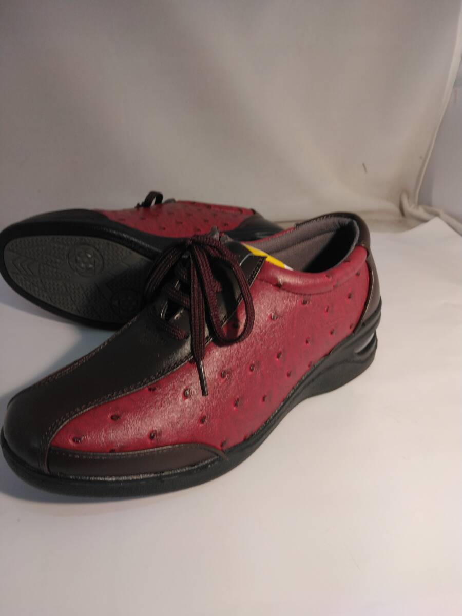 > 24,5 レディース ウォーキングシューズ 250 エアー入り ワイン色 型押しオーストリッチ風柄 高さ約5cm 着脱簡単! サイドファスナー付