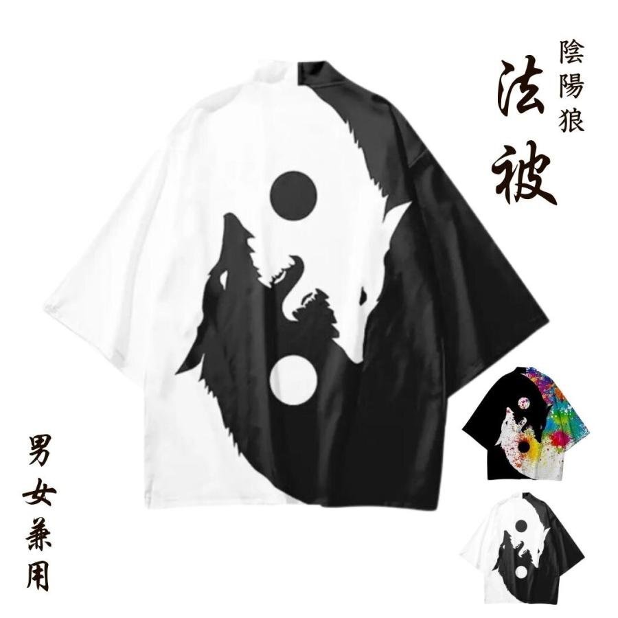 - 【2種類から選択】【購入後メッセージ下さい】法被 陰陽狼 全2種類 ホワイト カラフル Lサイズ 夏祭り 夏恋 寺 韓国ファッション