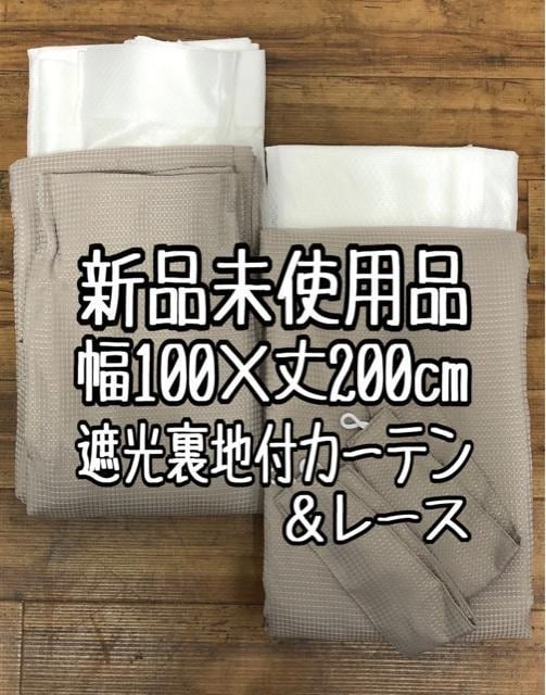- 新品☆幅100×丈200cm♪くすみカラー♪遮光裏地ワッフルカーテン&レース〇D615