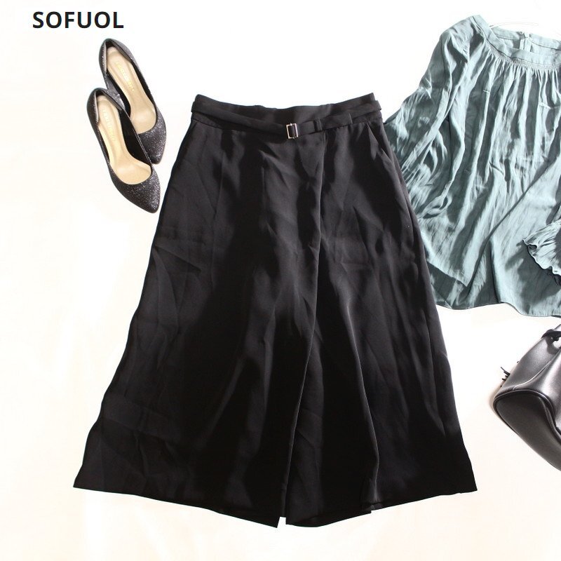 > 美品 SOFUOL ソフール 株) ワールド 合物 ベルト ゆったり フレア ジャージ― スーツ ガウチョ スカーチョ ワイド パンツ M ブラック 黒