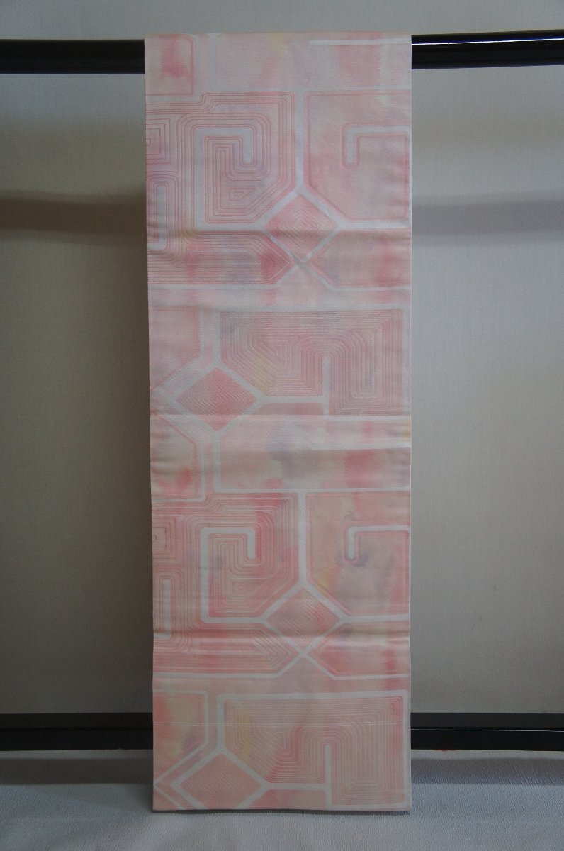 - 正絹アイボリー色地ムラ箔幾何柄模様名古屋帯[N15963]