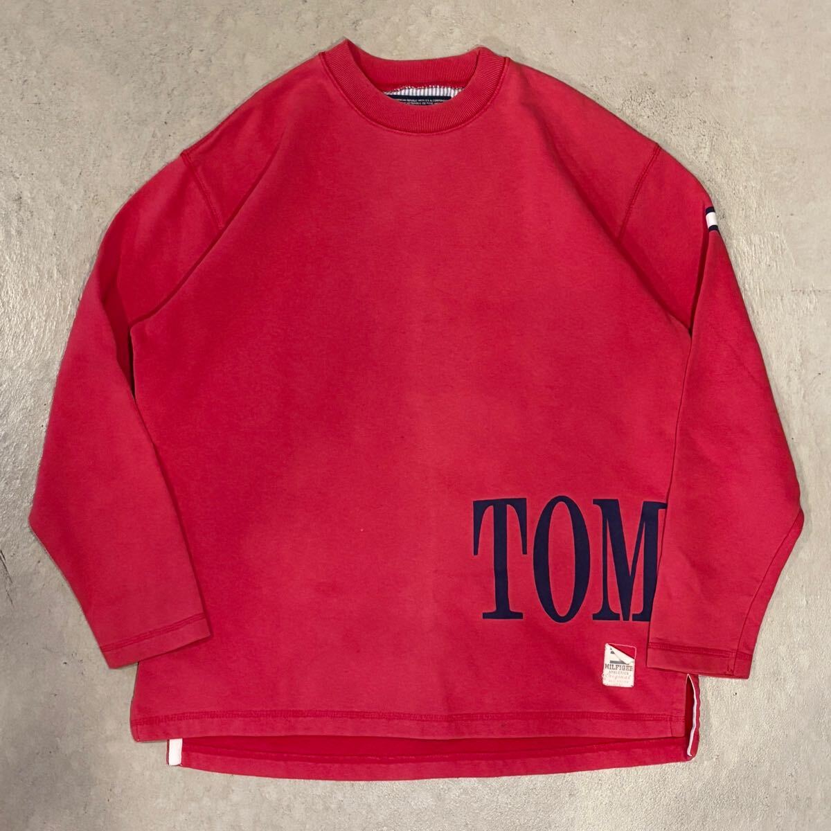 - 【90s】TOMMY HILFIGER トミーヒルフィガー スウェット トレーナー メンズ S 赤/RED ロゴ プリント クルーネック vintage 古着 USED 正規