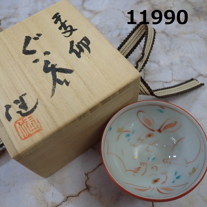 > ■FK-11990 九谷焼 人気作家 赤地健 干支 卯ウサギ ぐい呑 ぐいのみ 盃 20250314