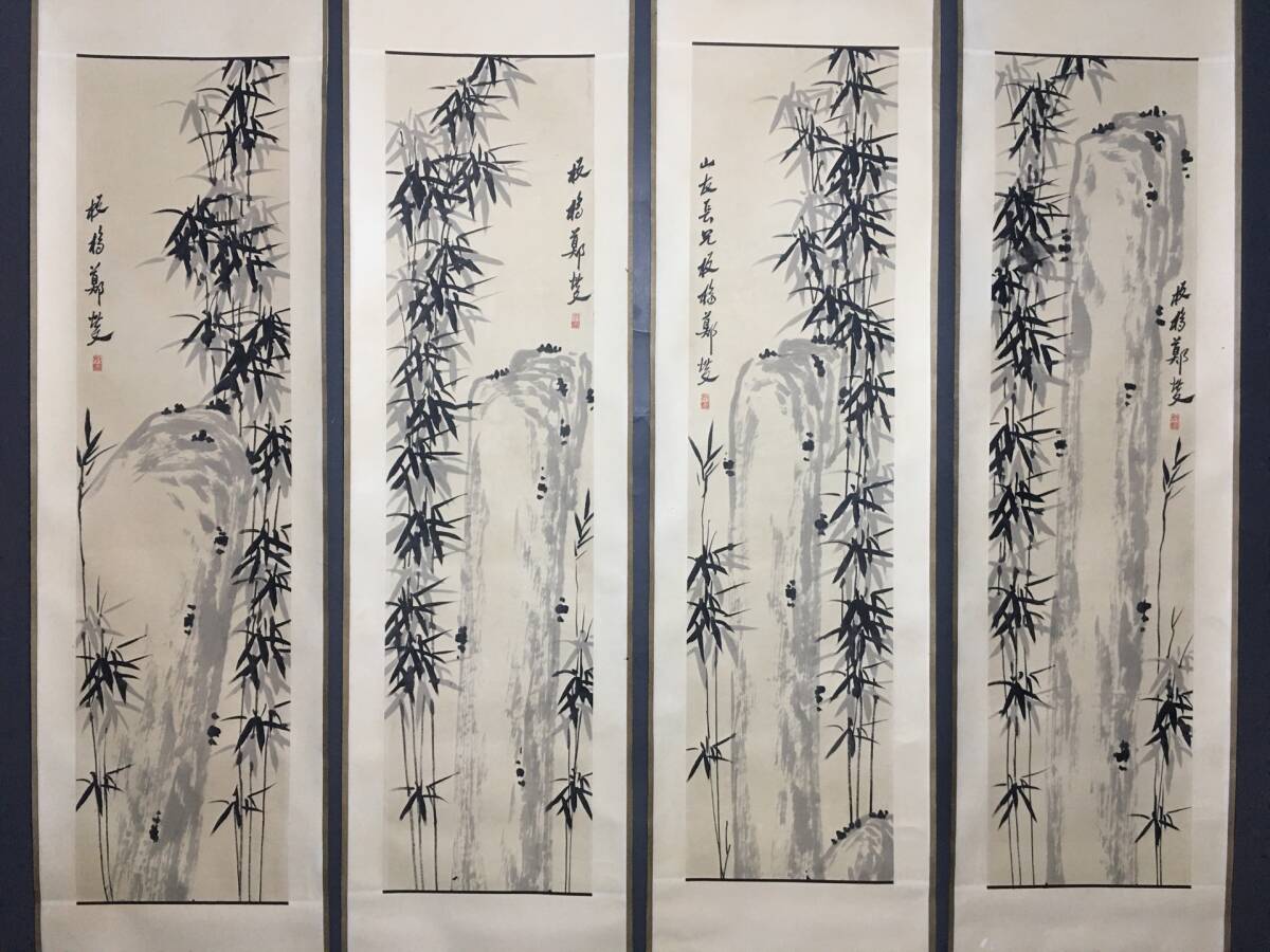 - 唐物 中国古画 墨竹画 四条屏 中堂画 手描き 画工精細 宣紙 水墨画 挂軸 中国美術品 時代物 D63