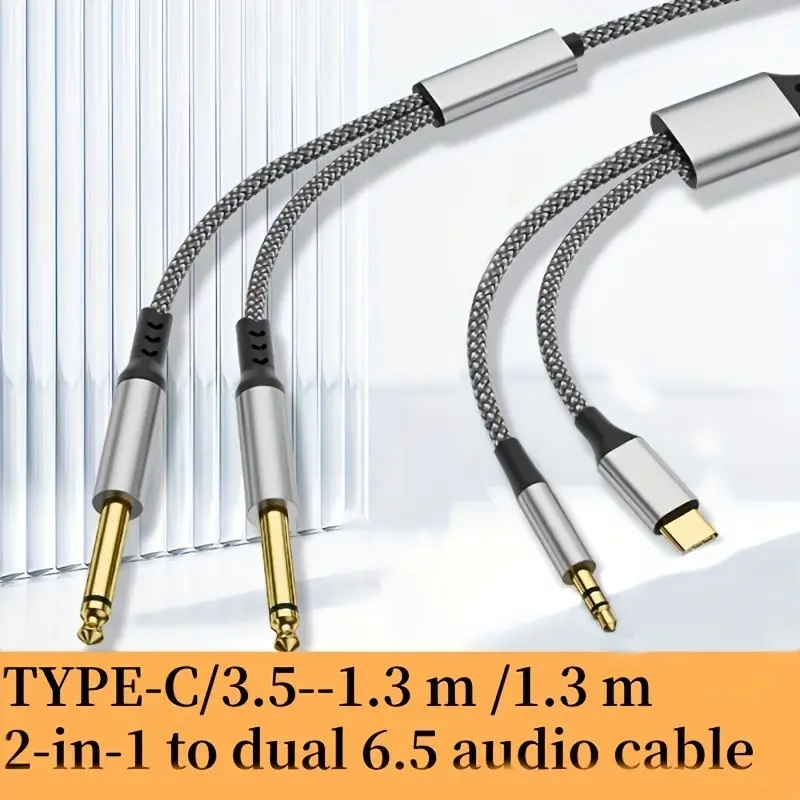 - 高音質ラウンド形状2in1ケーブル、デュアル6.5mm to 3.5mm、Type-Cコネクタ ライトニング付きマイクスマホ携帯電話PCアンプミキサーギター
