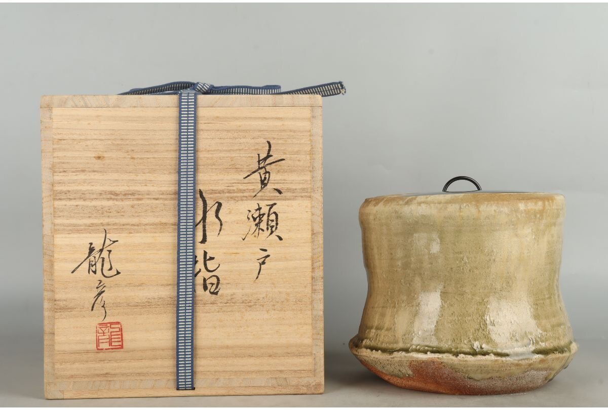 > [ギャラ藤]勝尾龍彦/黄瀬戸水指/共箱/D-429 (検索)骨董/水差/水器/水注/茶釜/茶碗/皆具/水指/黄瀬戸