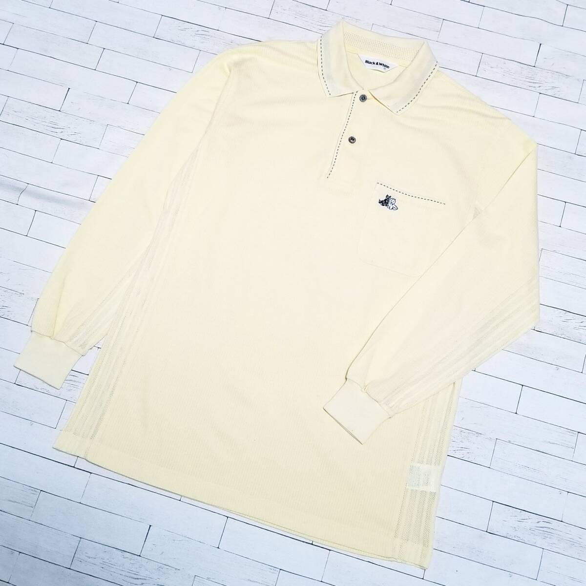 > 【美品】◎ Black&White ブラック&ホワイト/ 長袖 ワンポイント刺繍ロゴ ポロシャツ サイドメッシュ 胸ポケット SIZE: M イエロー