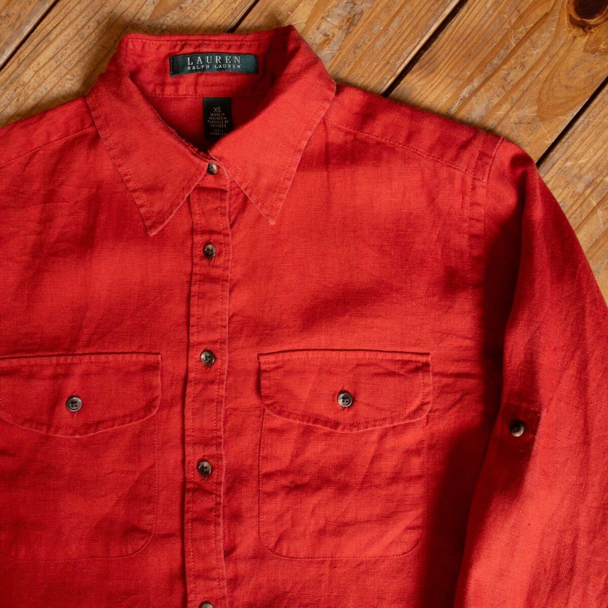 - USA古着 Ralph Lauren ラルフローレン 長袖リネンシャツ レディース Sサイズ 麻 バーミリオン カジュアル アメリカ仕入れ 夏物 春物 T2840