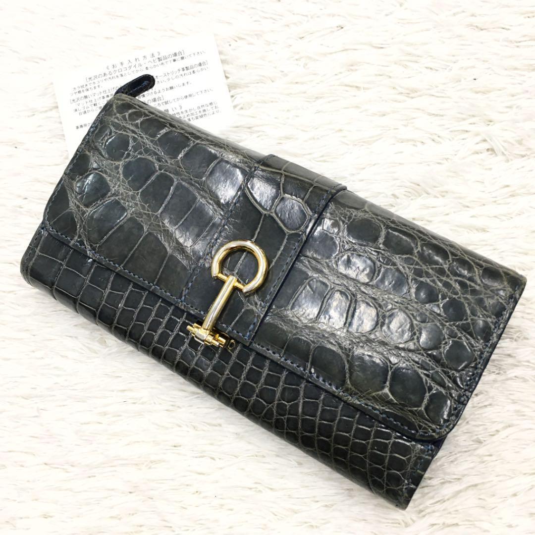 - エキゾチックレザー クロコダイル ワニ革ウォレット 長財布 金具メッキゴールド