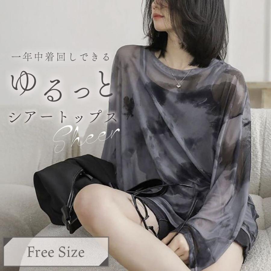 - トップス シアー タイダイ 長袖 フリーサイズ ブラック Tシャツ ダンス衣装 韓国ファッション スケスケ かっこいいトップス レディース