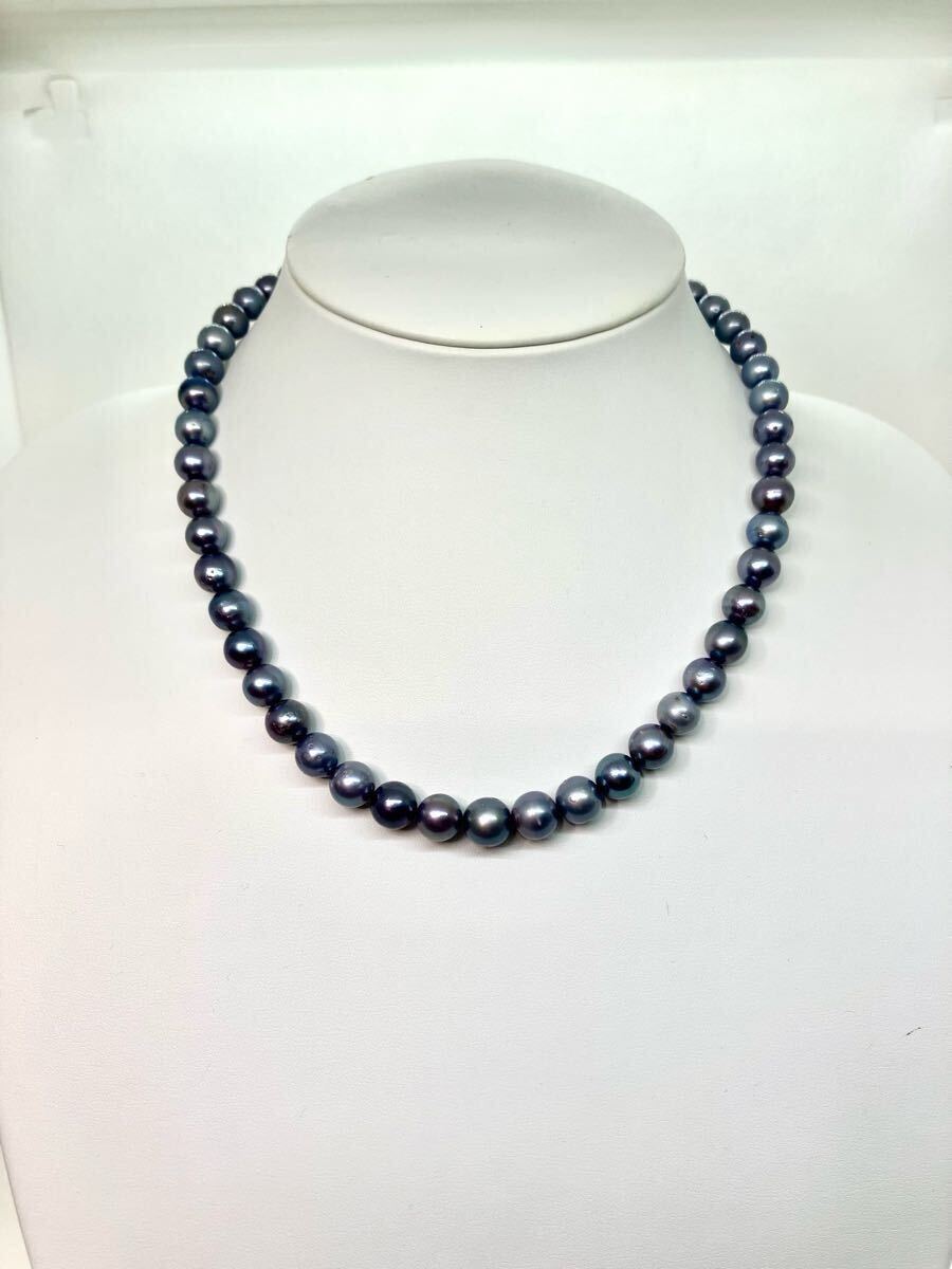 - 【新品】黒蝶真珠染めネックレス/グレー/南洋真珠ネックレス/グラデーション/クロチョウ/タヒチパール/葬祭
