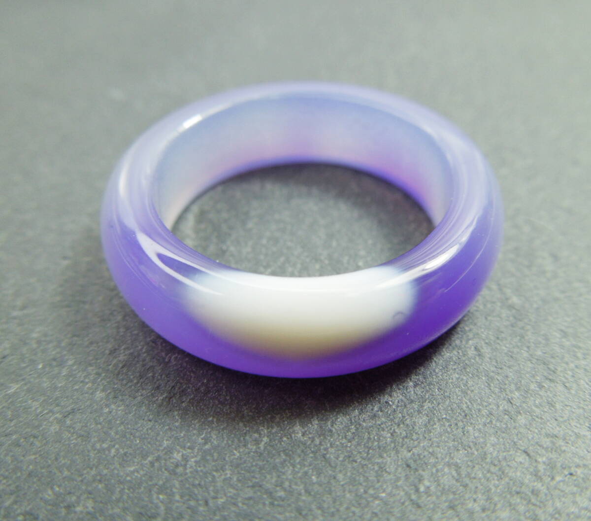 - L32 メノウリング 約14号 パープル系 瑪瑙指輪 くりぬきリング 天然石 紫 ライトパープル ホワイト 白 金属アレルギー対策 新品 くり抜き