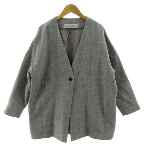 - スタンプ アンド ダイアリー STAMP AND DIARY ジャケット ノーカラー オーバーサイズシルエット 日本製 起毛 ウール混 グレー
