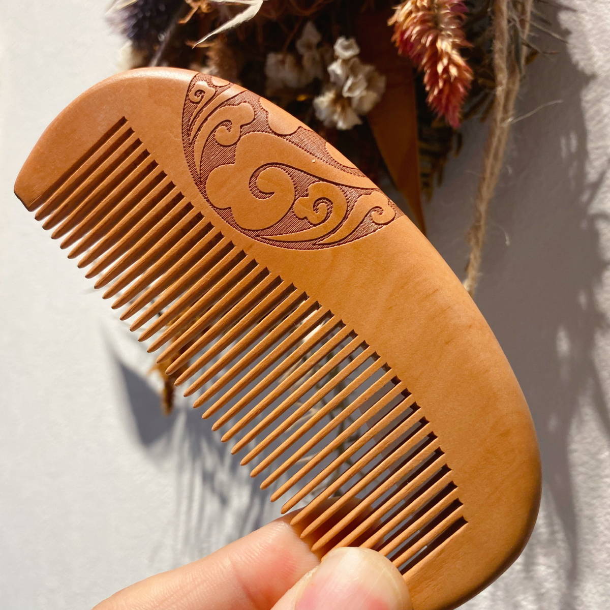 - A型 桃の木 彫刻 櫛 運気アップ 厄除け くし クシ ブラシ