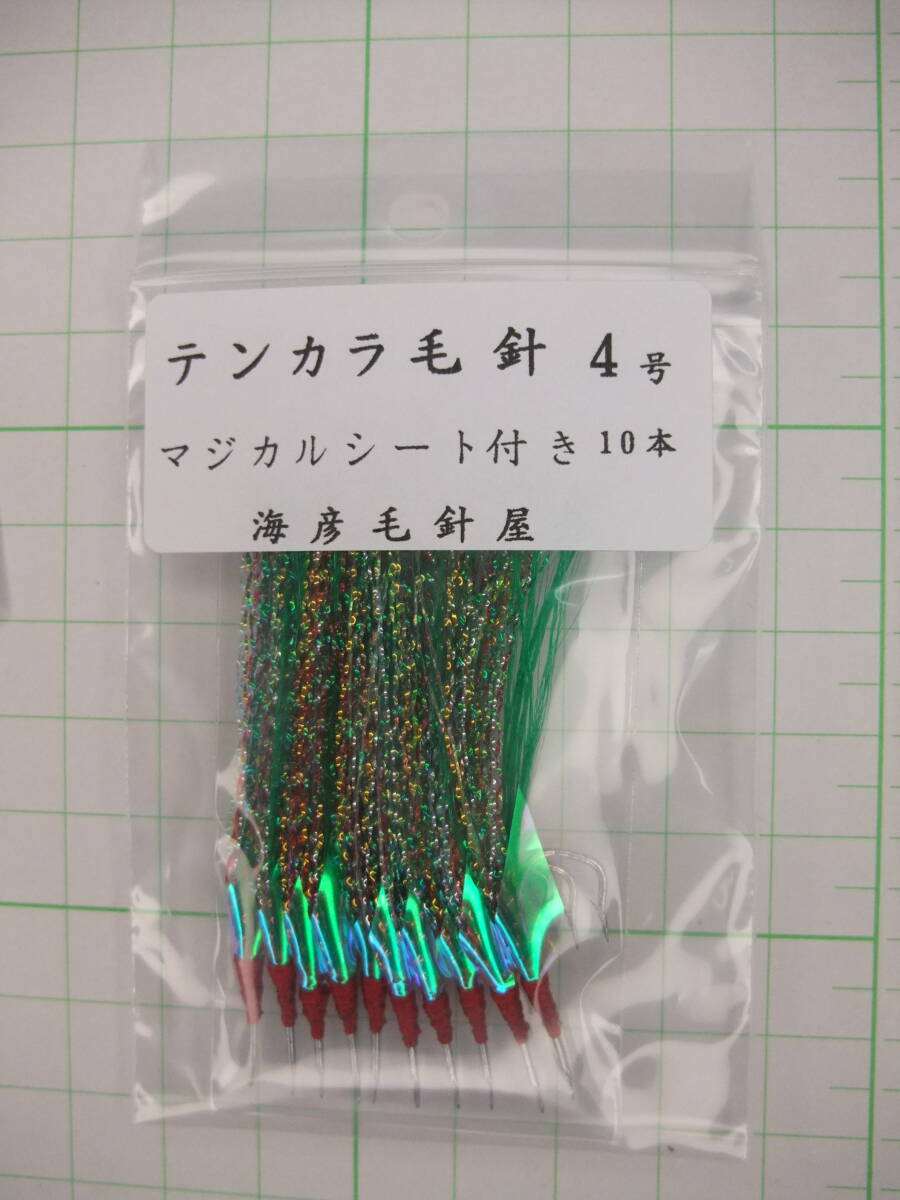 - 4MM テンカラ毛針4号 イソ縄毛針 オキメバル 緑フラッシャー マジカルシート付き 10本セット