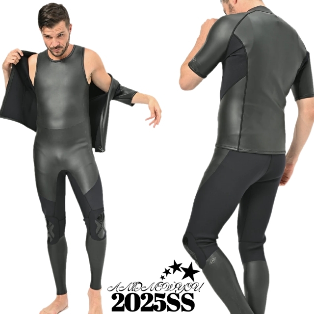> 5サイズ 2025年モデル 2ピース シーガル 2mm 半袖タッパー + 3mm ロングジョン ウエットスーツ メンズ ANDNEWYOU スキン サーフィン 5mm