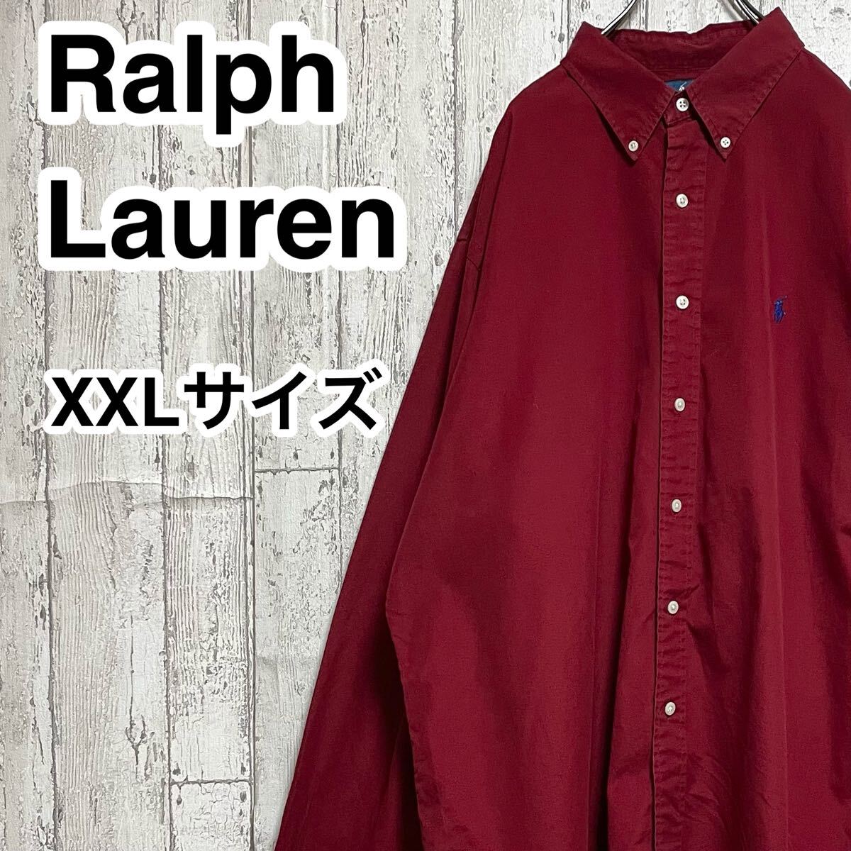 - 【人気カラー】Ralph Lauren ラルフローレン 長袖 BDシャツ ボタンダウン ビッグサイズ XXLサイズ ワインレッド 刺繍ロゴ 刺繍ポニー 25-1