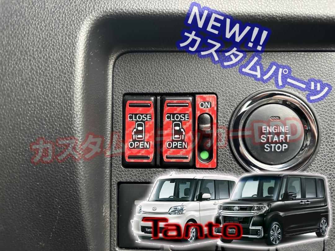 - TANTO タント LA600S LA610S パワースライドスイッチシート 5Dカーボン調レッド赤艶 ボタン パワスラ 電動ドア オート ON OFF ダイハツ