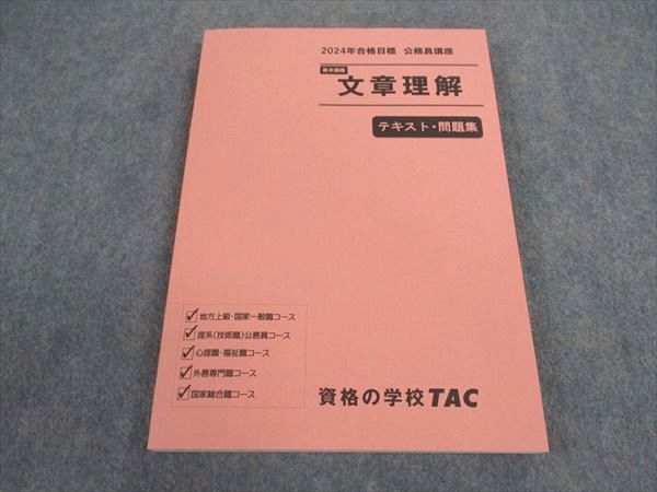 - TAC 公務員講座 基本講義 文章理解 テキスト・問題集 2024年合格目標 書き込み無し ☆ 016S4B