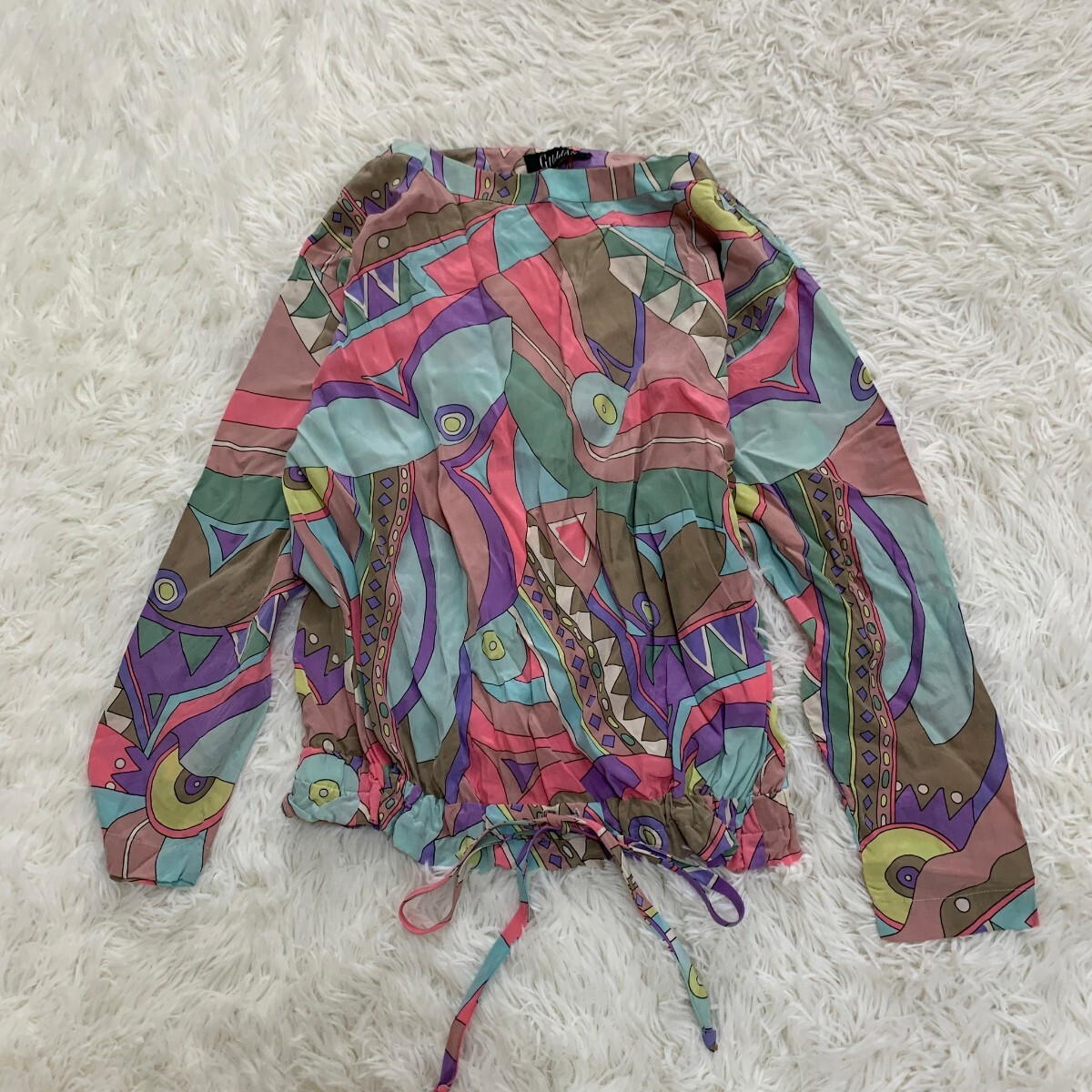 - GILLIAN ジリアン ブラウス 総柄 派手カットソー ブルー