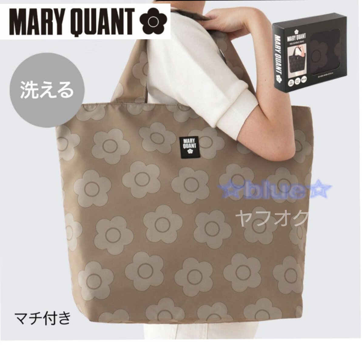 - マリークワント トートバッグ ファスナー付 折り畳み エコバッグ 大容量 ベージュ 肩がけバッグ ショッピング 買い物袋 マリクワ