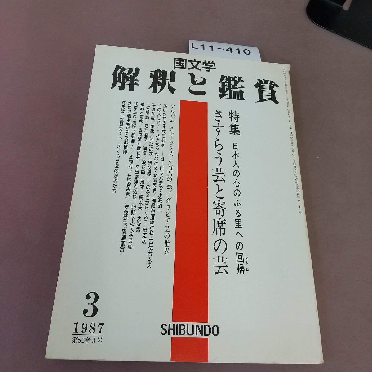 - L11-410 国文学 解釈と鑑賞 669 昭和62年3月号 至文堂 破れあり
