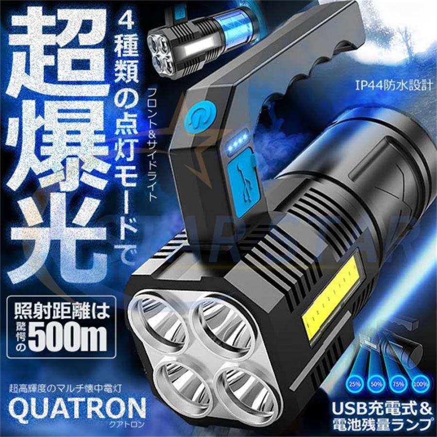 - USB充電式 懐中電灯 サーチライト 爆光 マルチ ポータブル 4つの点灯 照明 ランプ 緊急 照射 防水 防災 地震 軽量 小型 登山 釣り用 作業用