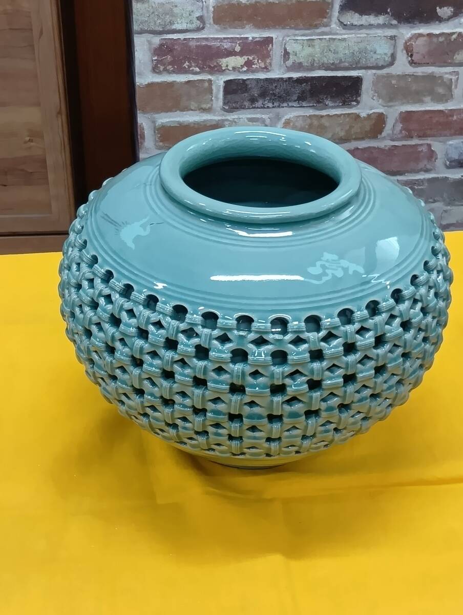 - 20747 白光窯 恩峰 「白光窯 恩峰 姜顕求 雲鶴紋 花瓶」高さ;約22㎝口径12cm共箱付