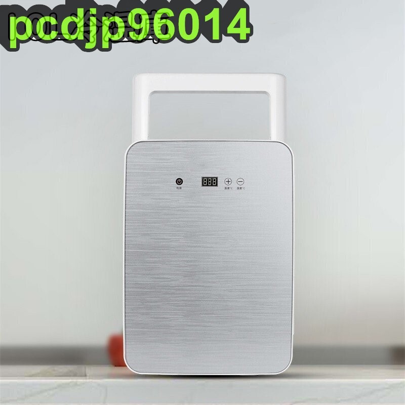 - 小型10L冷蔵庫 ポータブル冷蔵庫 -5℃~+65℃調整 持ち運び便利 LCD温度表示 静音 取っ手付 家庭車載用 保温保冷 立ち置き AC/DC給電 銀色