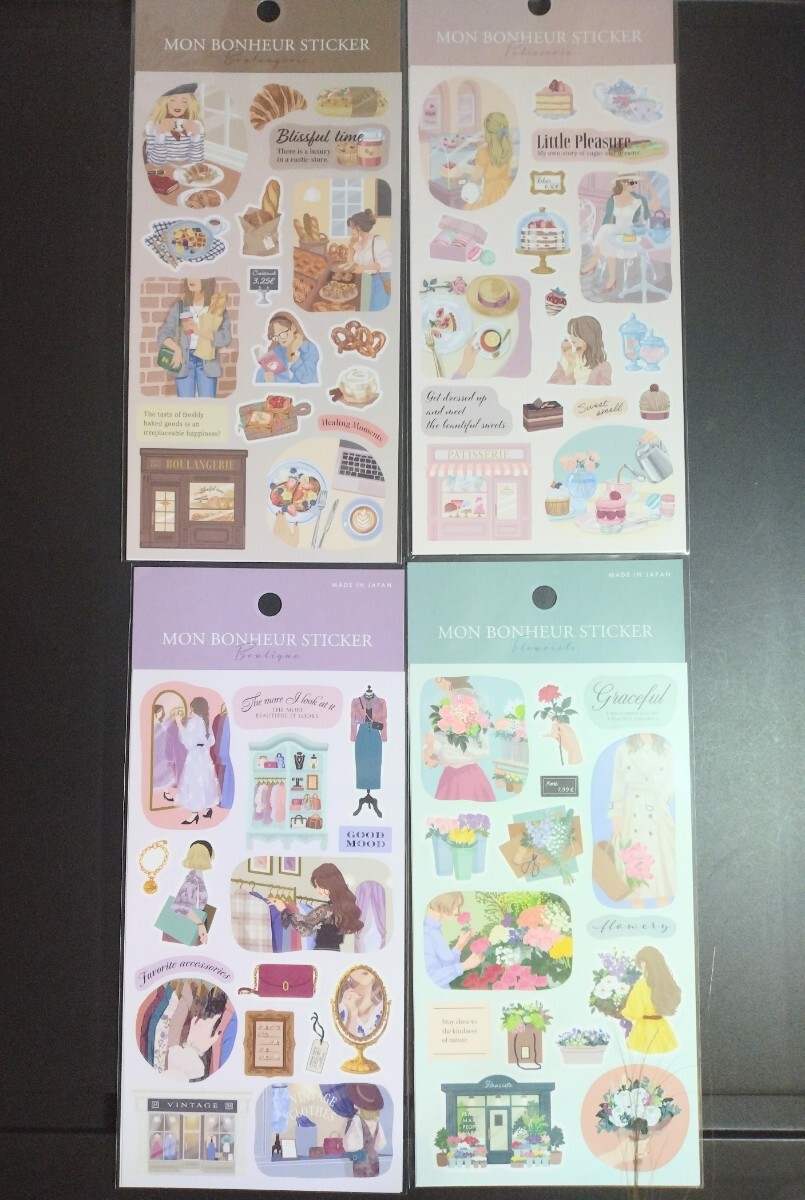 - セリア キャンドゥ シートシール モン ボヌールシール パン屋 ケーキ屋 古着屋 花屋