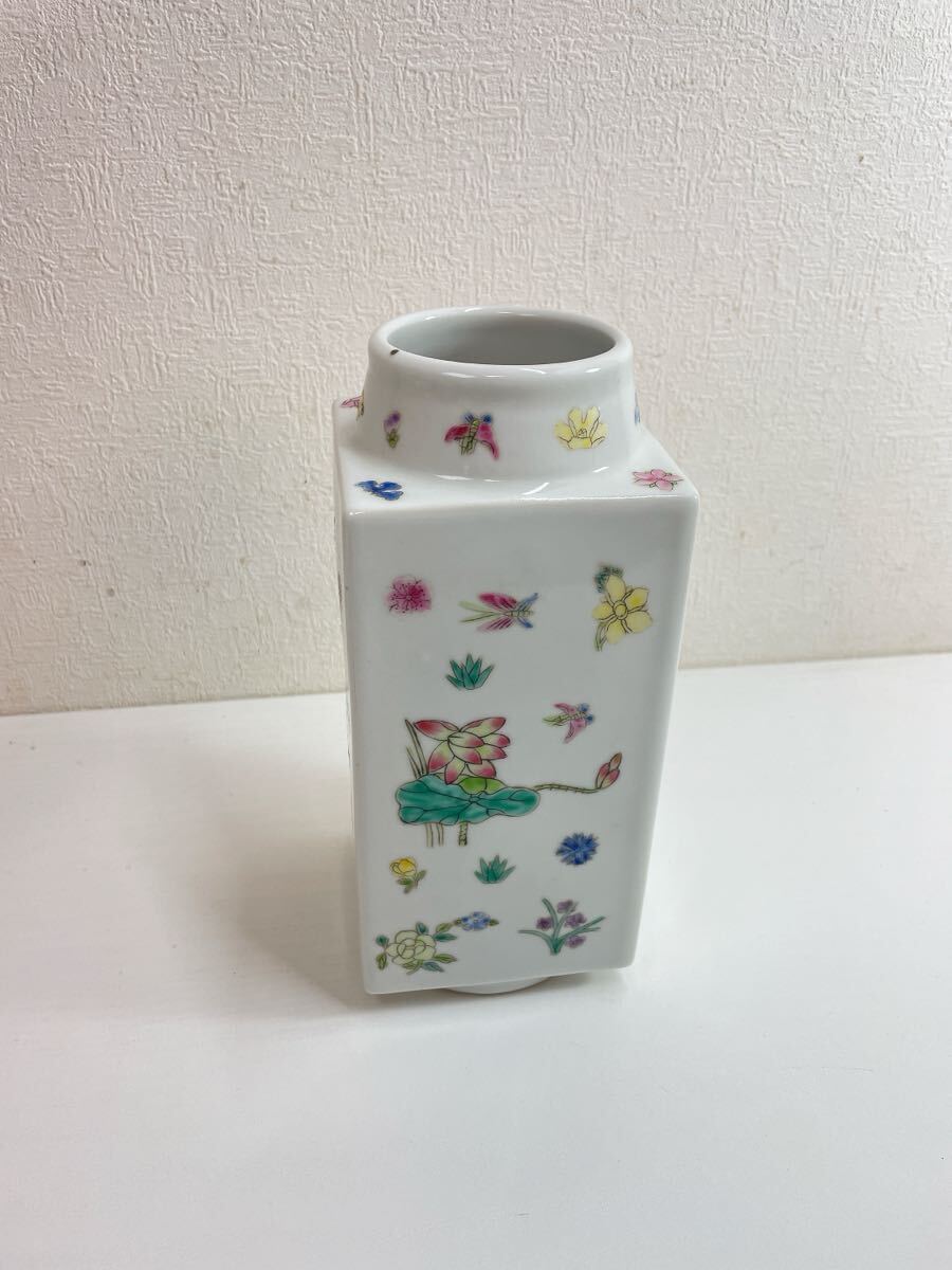 - 1398 花瓶 景徳鎮 四角柱 花柄