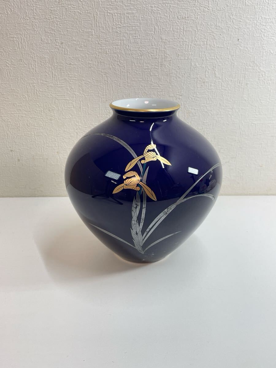 - 1396 香蘭社 花瓶 高さ約18cm フラワーベース 金彩 壺 瑠璃 花器