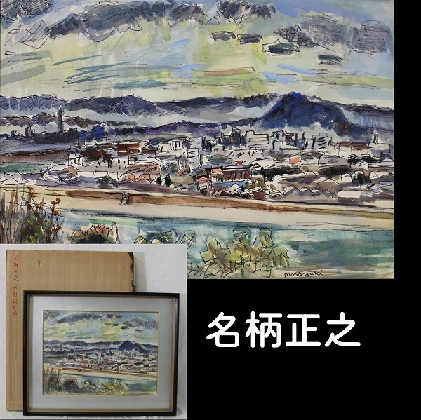 - 【真作】 名柄正之 「風景」 約10号 水彩 広島出 広島のノスタルジック風景画 D270