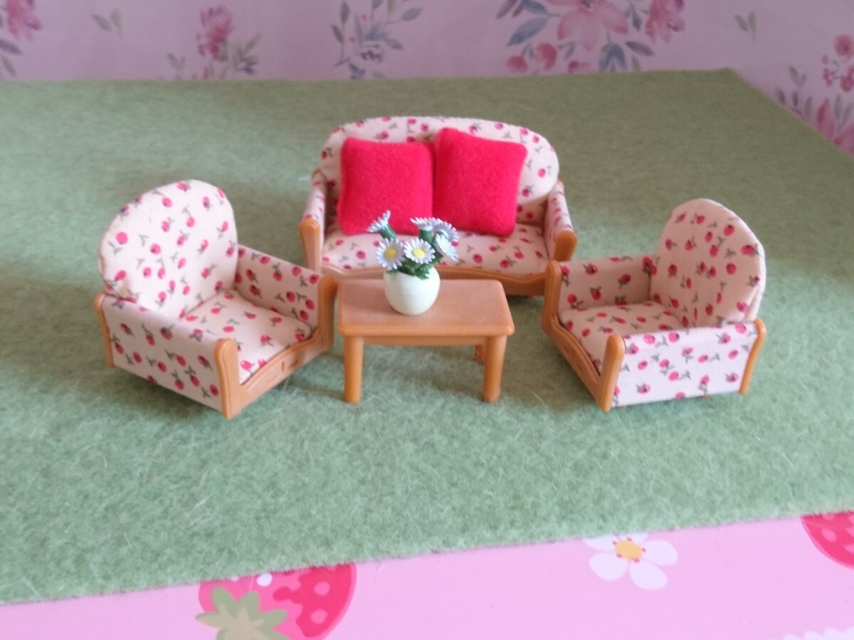 - シルバニア 海外 ソファーセット リビングセット 花柄 レア シルバニアファミリー 花
