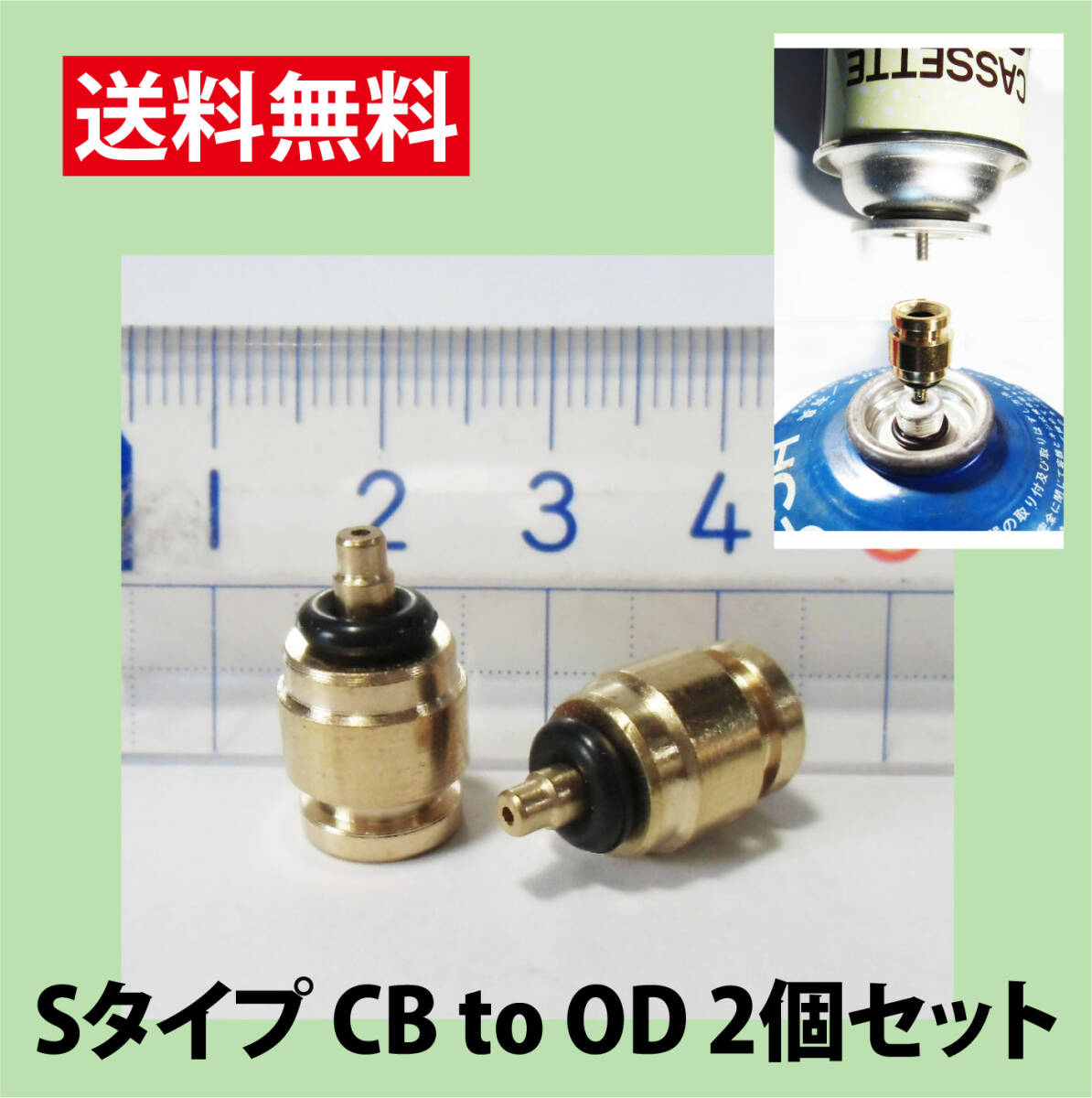 - 送料無料!!ガスチャージアダプターS型 CB缶からOD缶にガス補充 インナー、アウターOリング装着済 2個セット