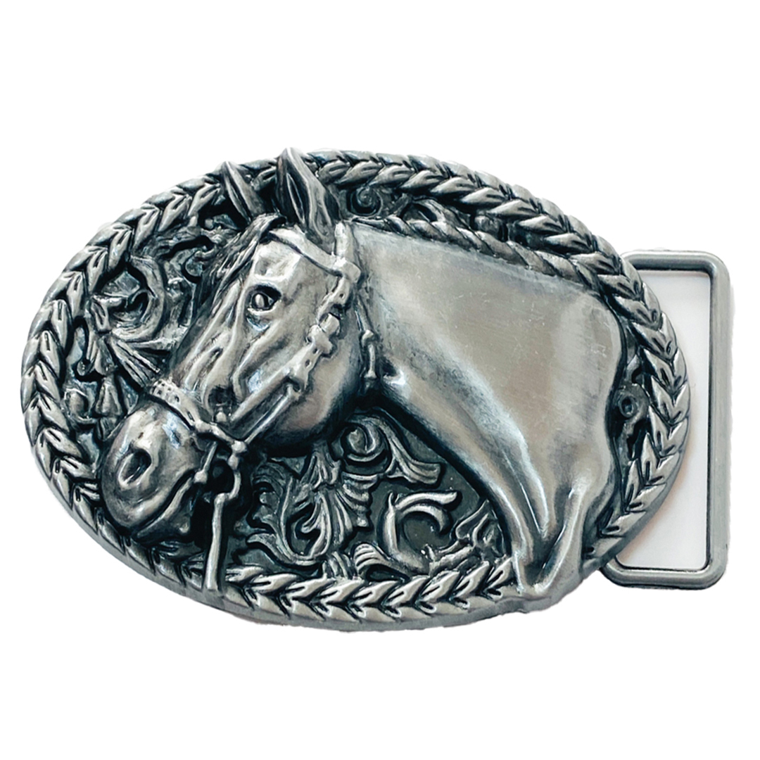 > 新品■匿名配送/送料無料■ ベルトバックルのみ メンズ レディース 交換可能 金具 かっこいい かわいい アニマル 動物 馬丸形 銀シルバー