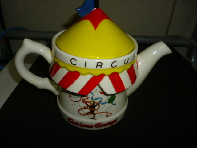 - 未使用 おさるのジョージ 陶器製 ティーポット クラシックジョージ サーカス キュリアスジョージ