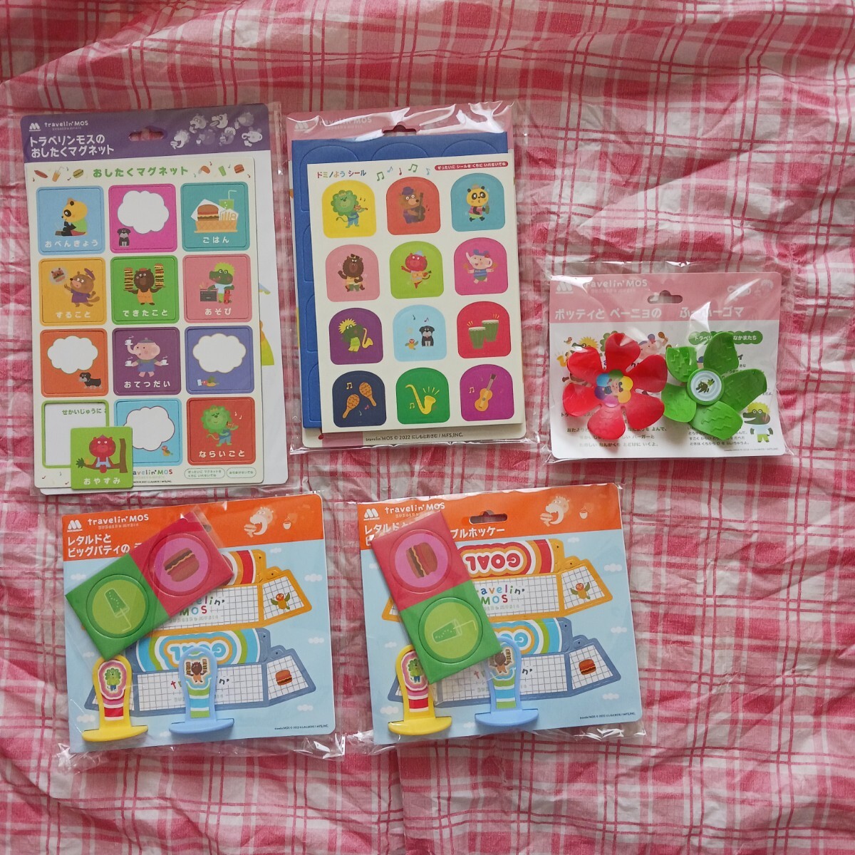 - モスバーガー MOS BURGER わいわいセット トラベリンモス グッズ おもちゃ 5点セット おしたくマグネット わくわくドミノ ふーふーごま