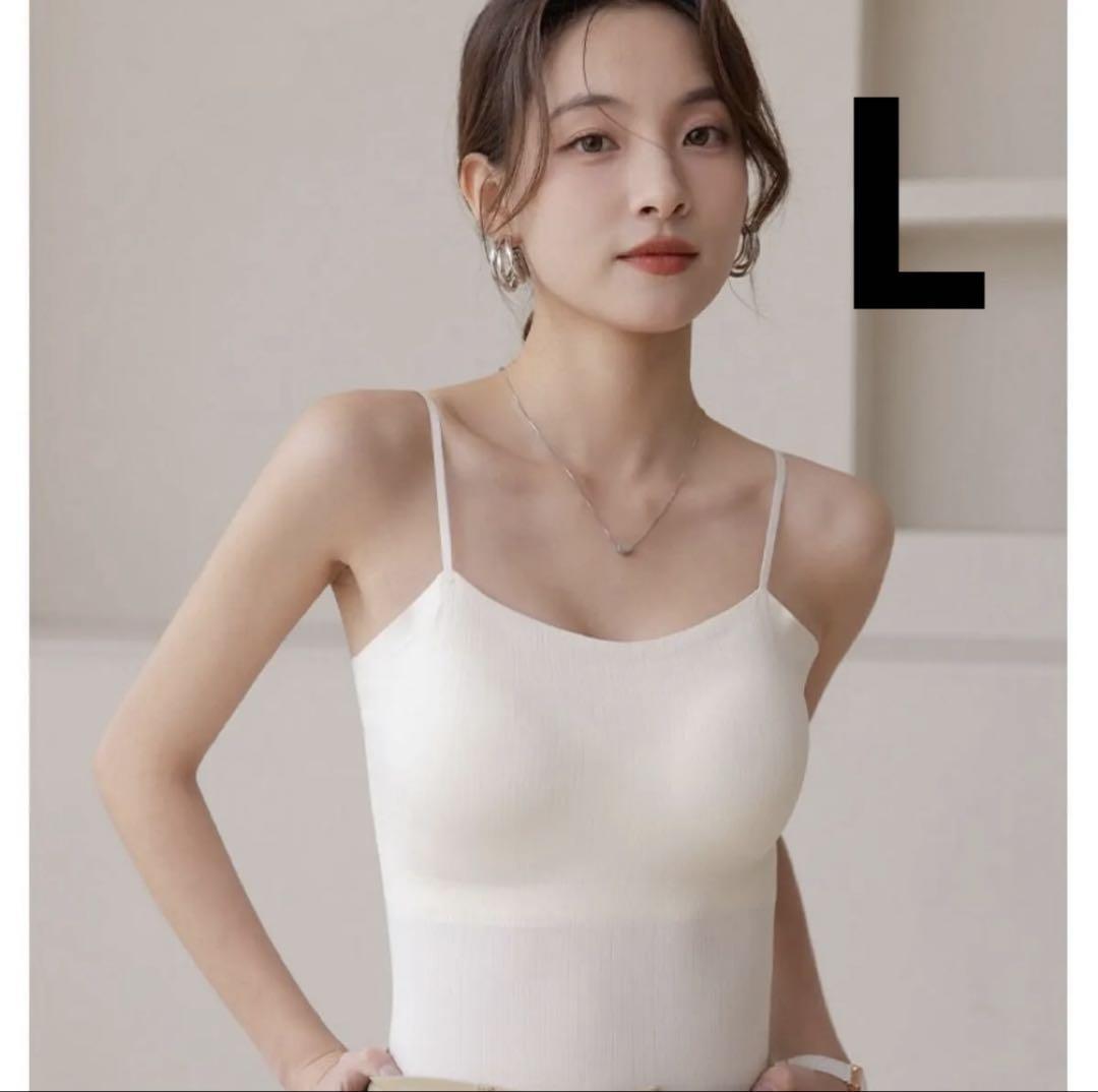- カップ付きキャミソール シームレスブラキャミ Lホワイト