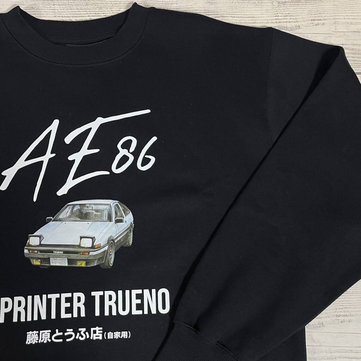 > ★ 頭文字D (イニシャル・ディー) ★ Lサイズ 黒色 トレーナー TOYOTA トレノ AE86 ドリフト イニD 藤原とうふ店 (新品タグ付き未使用品)