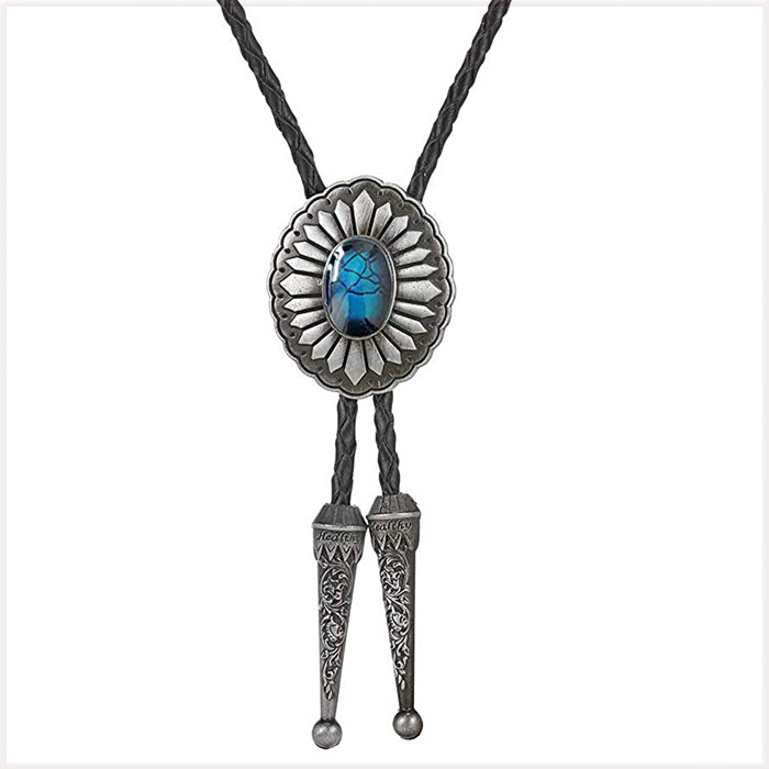 - [Fashion] Blue Oval Stone Bolo Tie ブルー オーバルストーン カウボーイ ループタイ 紐ネクタイ レザーロープタイ ボロタイ