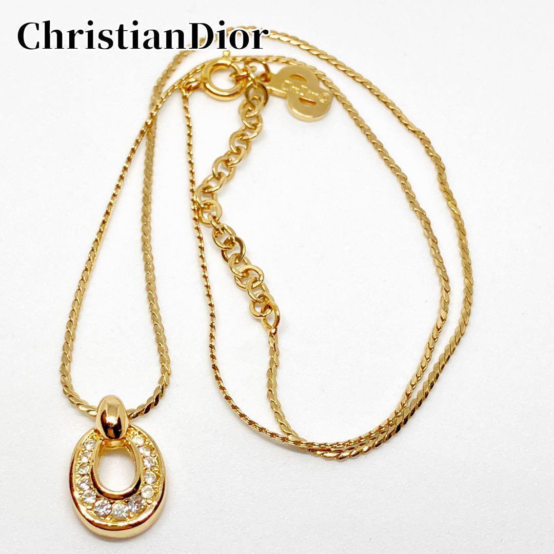 > Christian Dior クリスチャンディオール サークル ラインストーン ゴールド ネックレス ペンダント ヴィンテージ vintage ユニセックス