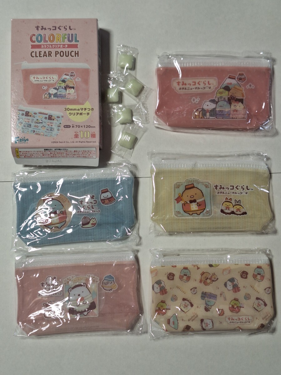 - すみっコぐらし カラフルクリアポーチ 5種セット エフトイズ しろくま とかげ とんかつ ホテル ニュー すみっコ ねこ えびふらいのしっぽ