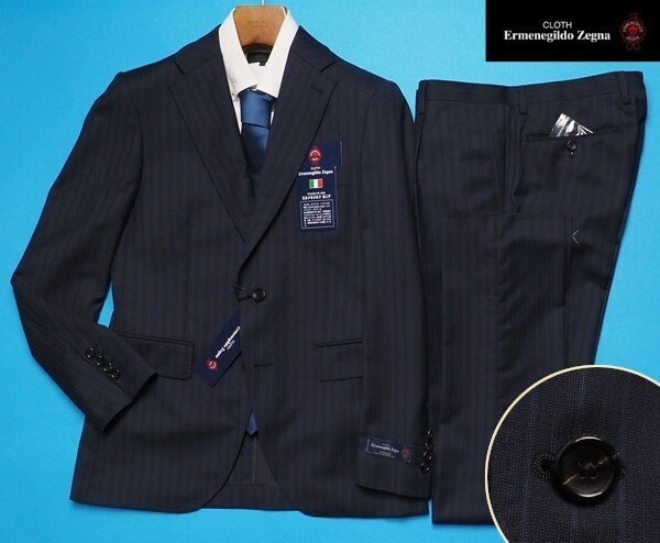 - 新品17.3万円 大手百貨店扱い 10マンス『Ermenegildo Zegna ゼニア TRAVELLER 伊製生地』ウール100% ストライプ スーツA6濃紺(B) 1513281