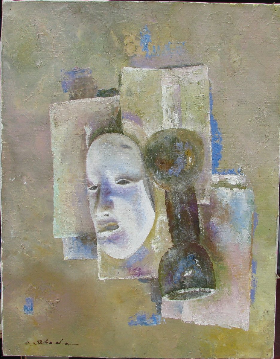 現美展運営委員,池田千鶴子「静」6号油彩,額なし,京都東峰美術旧蔵,成行き