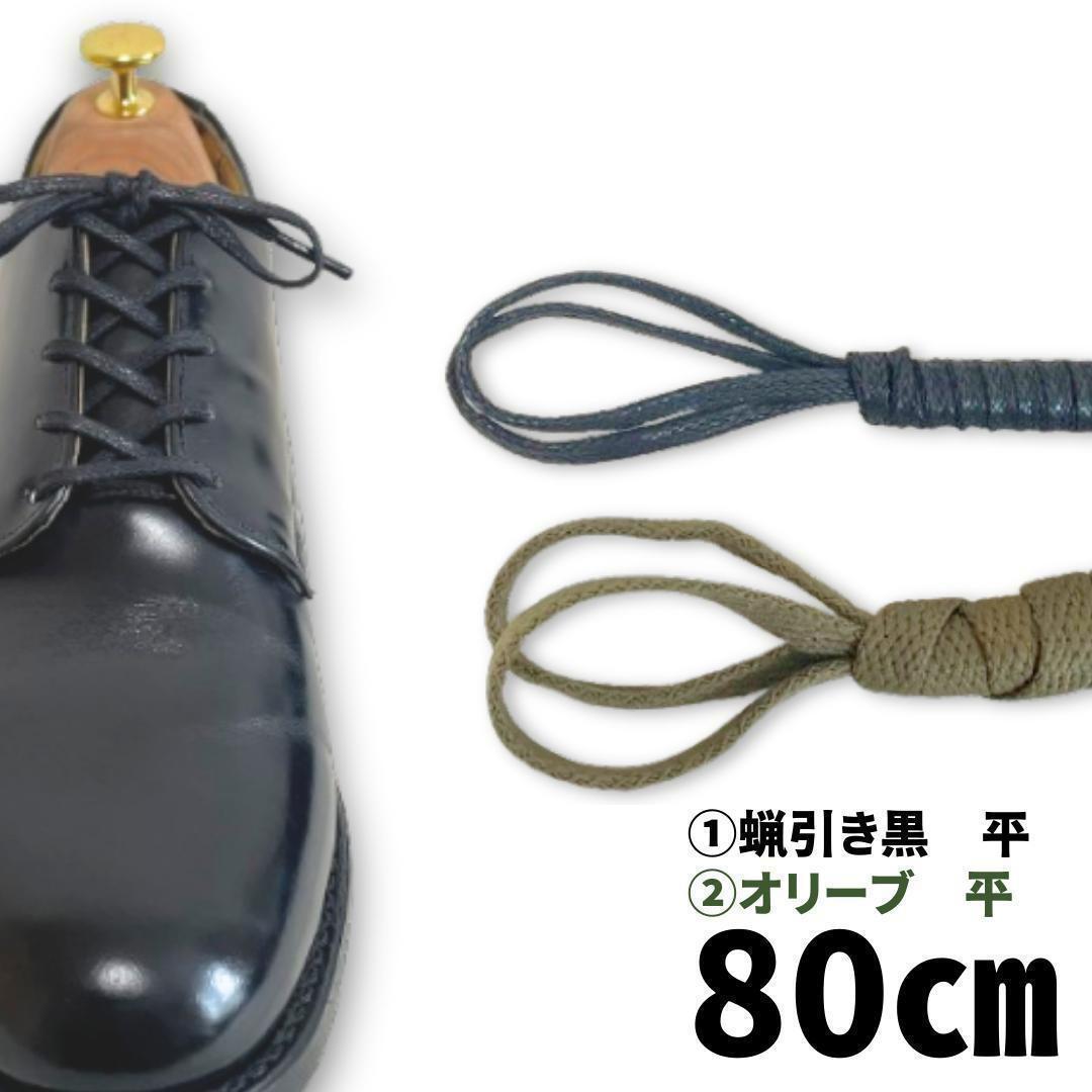 - ドレス/サービス5穴靴紐 80cm 2色4本セット オリーブ7mm&蝋引き黒平2.8㎜ アレンジ 革靴 メンズ レディース ブラック