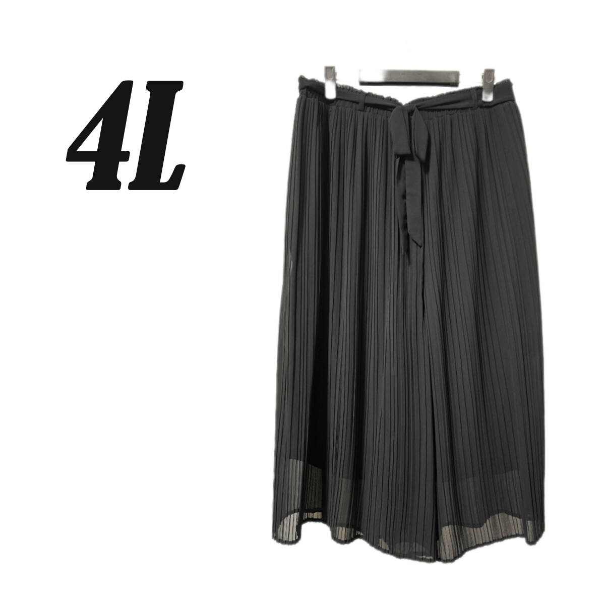 - ●新品/無地/プリーツ/ロングパンツ/黒/4L/ワイド/f10462