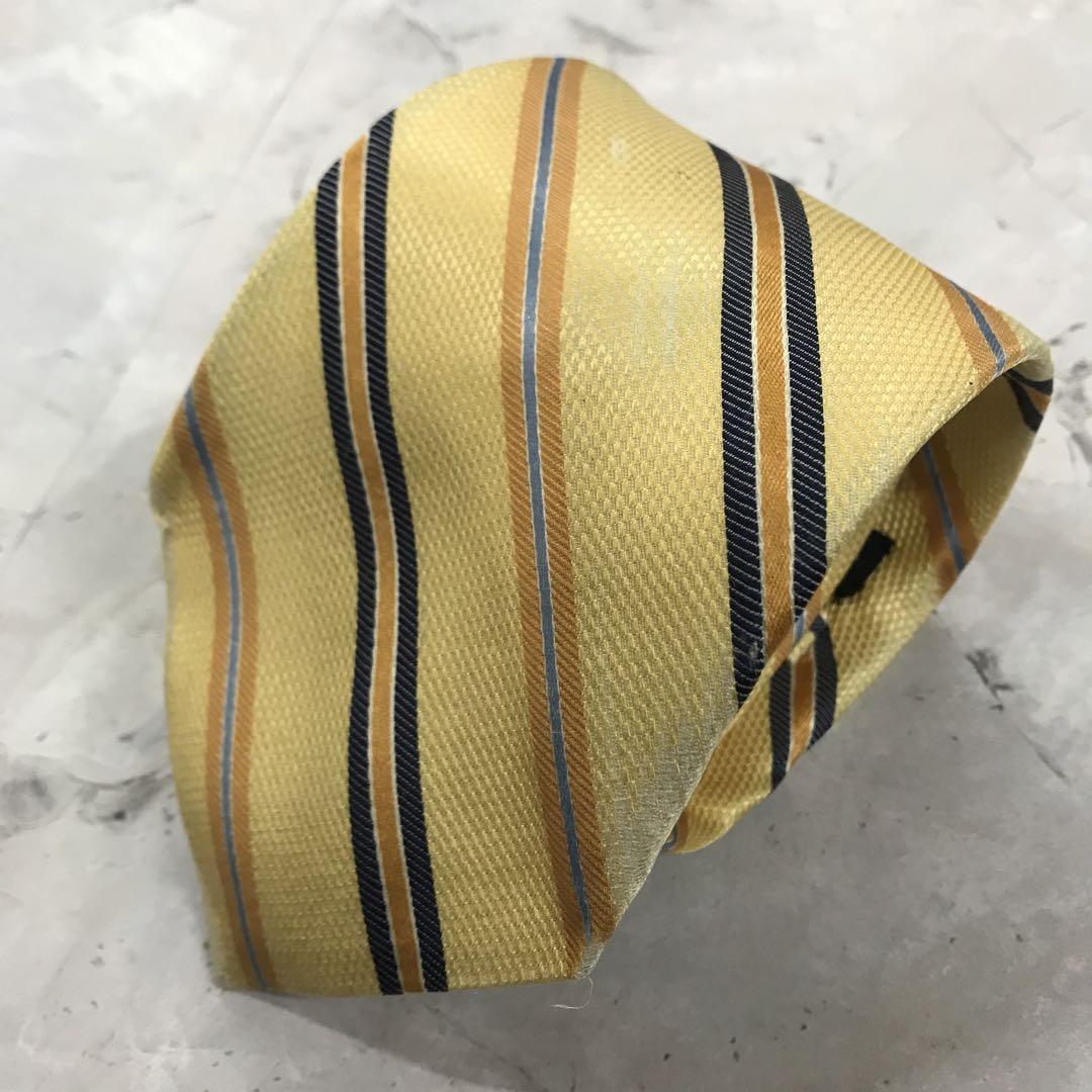 - フェアファクス ネクタイ 黄 紺 橙 水色 ストライプ柄 シルク【n856】