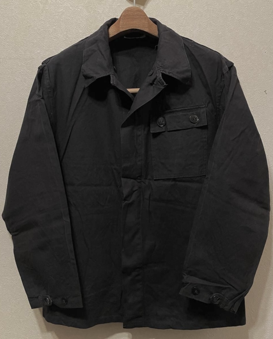 > 希少サイズ70sビンテージ東ドイツ軍モーターサイクル実物ジャケットk44カバーオールMコットン黒70年代ユーロNVAミリタリー(デッドストック